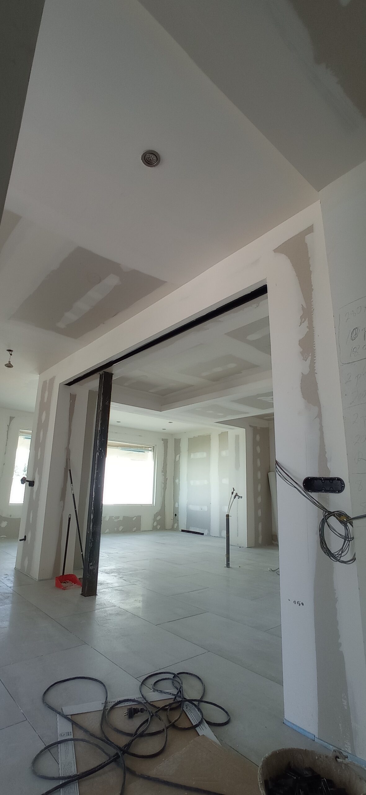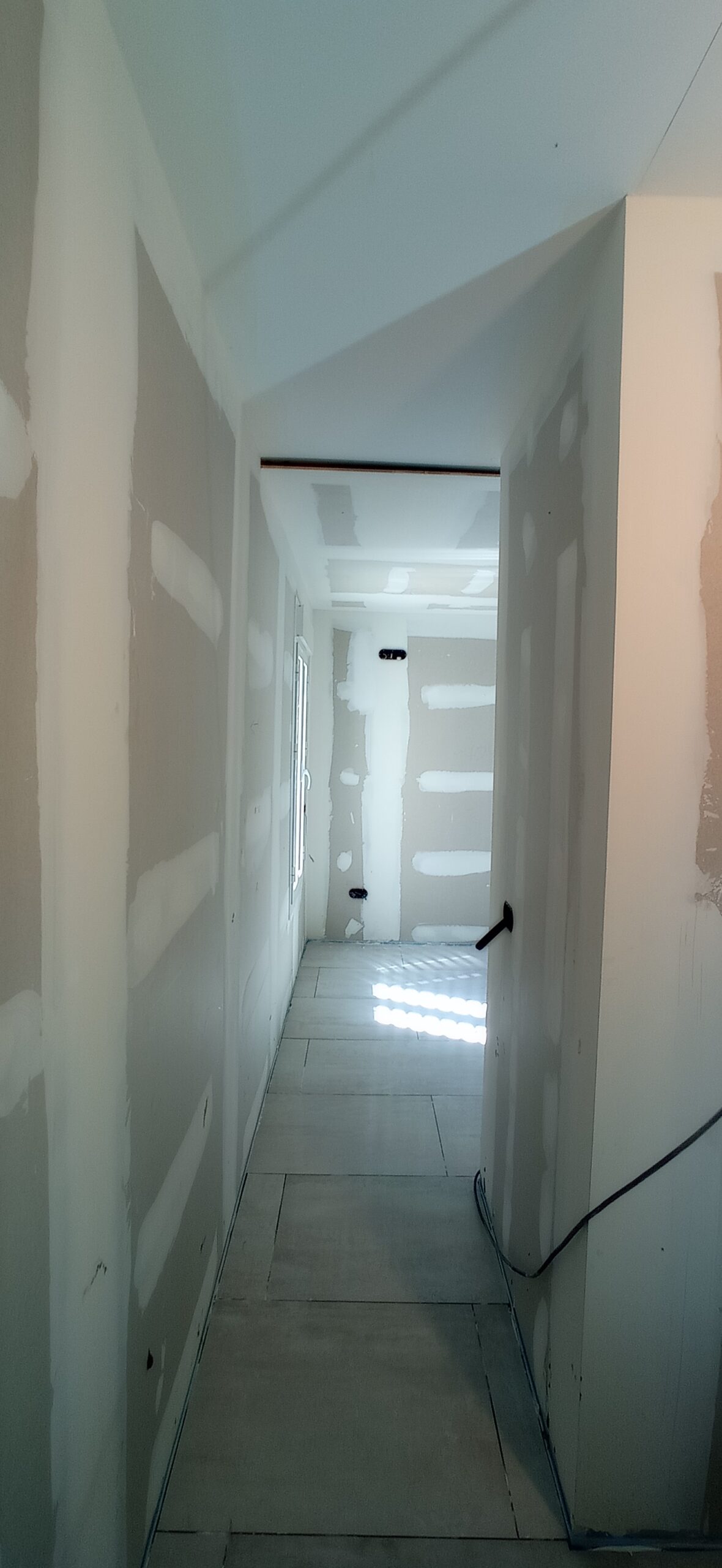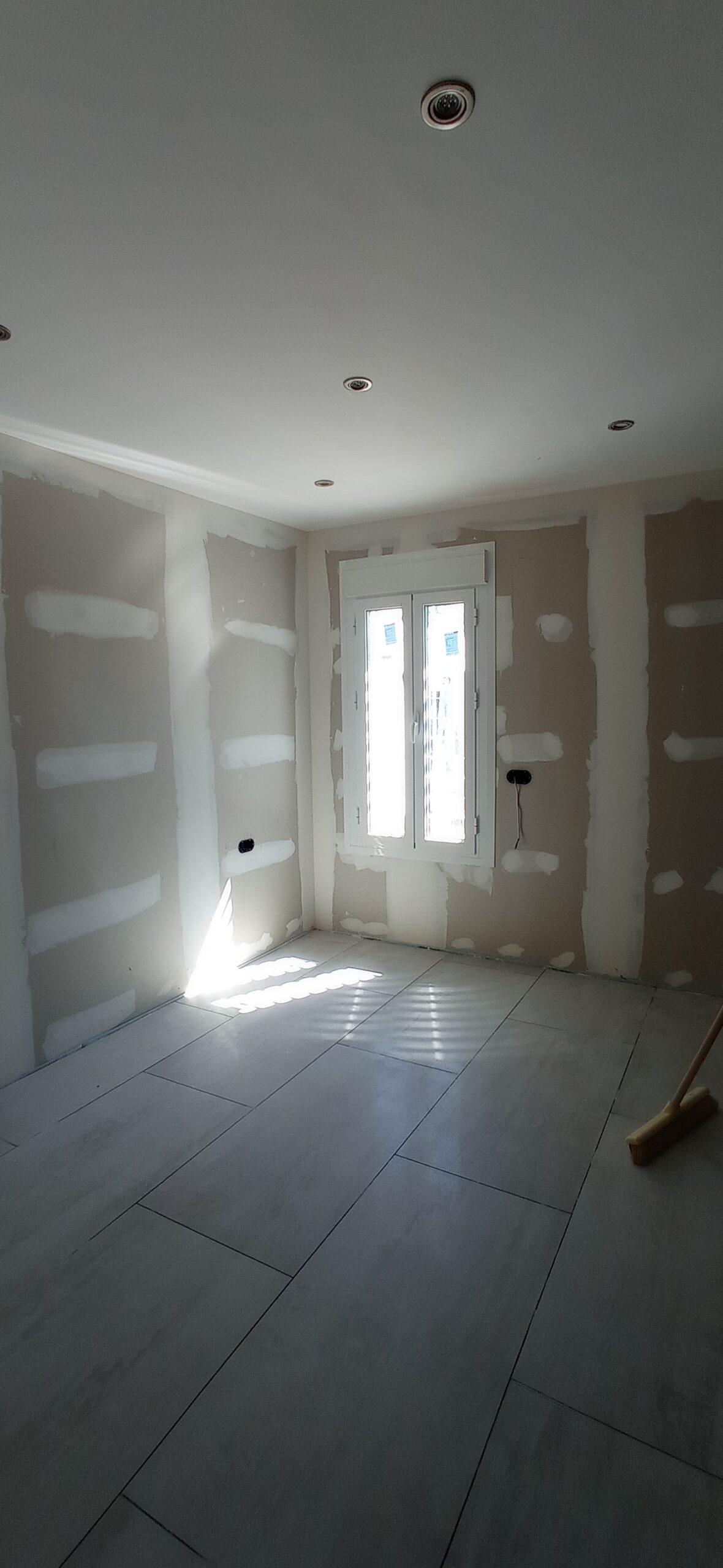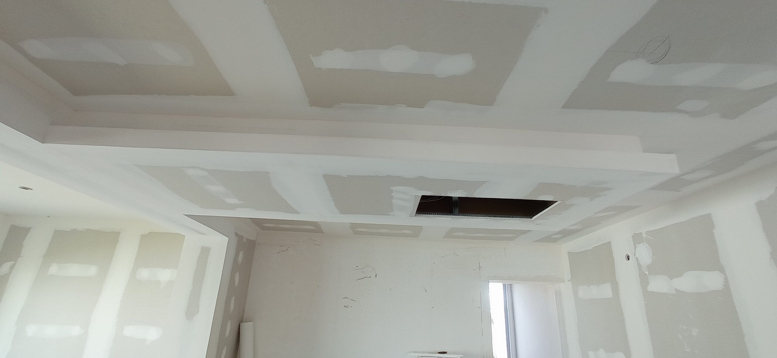 Los tabiques interiores se han levantado con perfilería metálica modulada a 400 mm, revestida por ambas caras con placa de yeso laminado de 15 mm de espesor, garantizando una correcta resistencia mecánica y un buen acabado superficial para posteriores tratamientos decorativos.